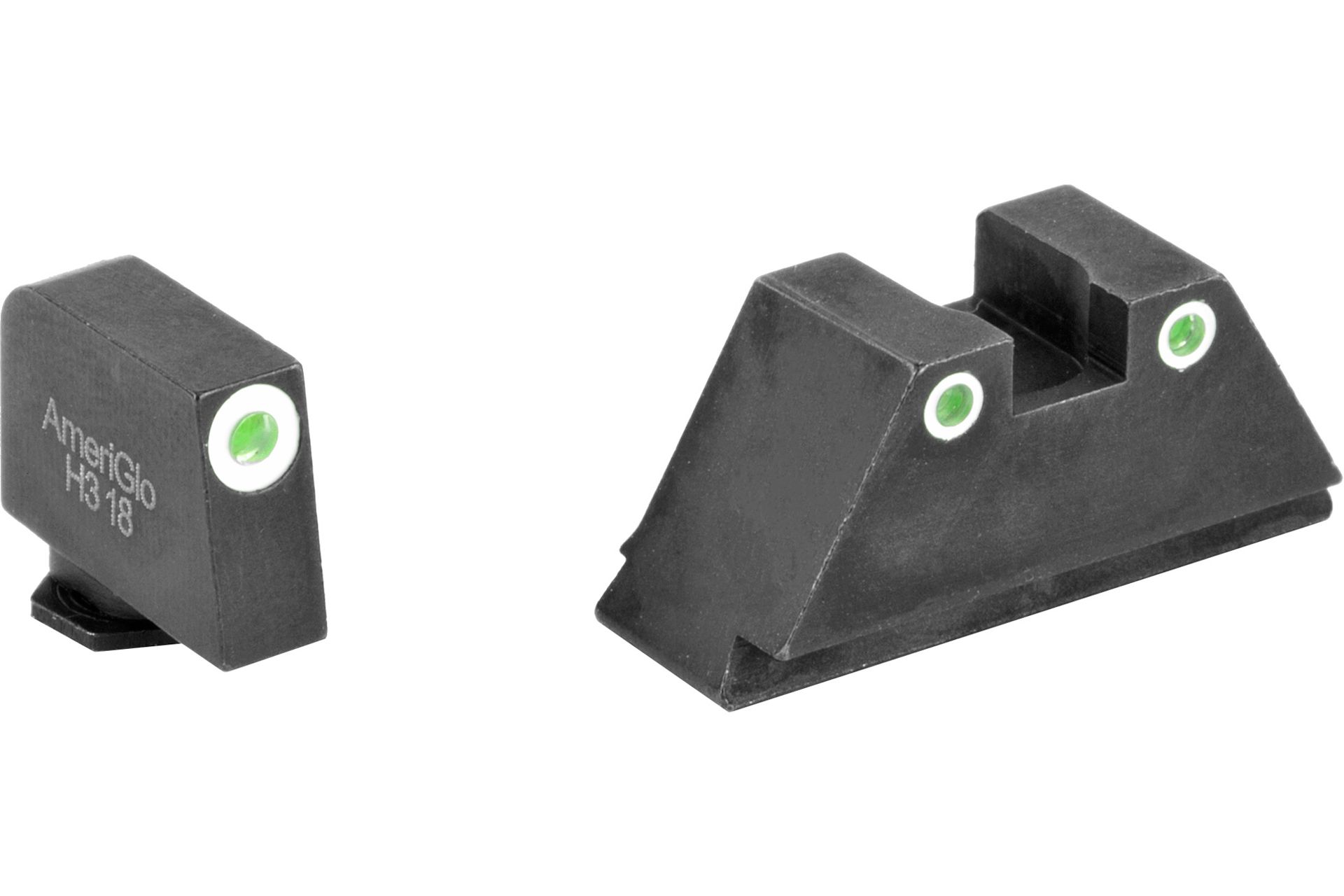 AmeriGlo Tall Suppressor Series 3 Dot Sights for All Glocks - Green with White Outline - AMGGL-329