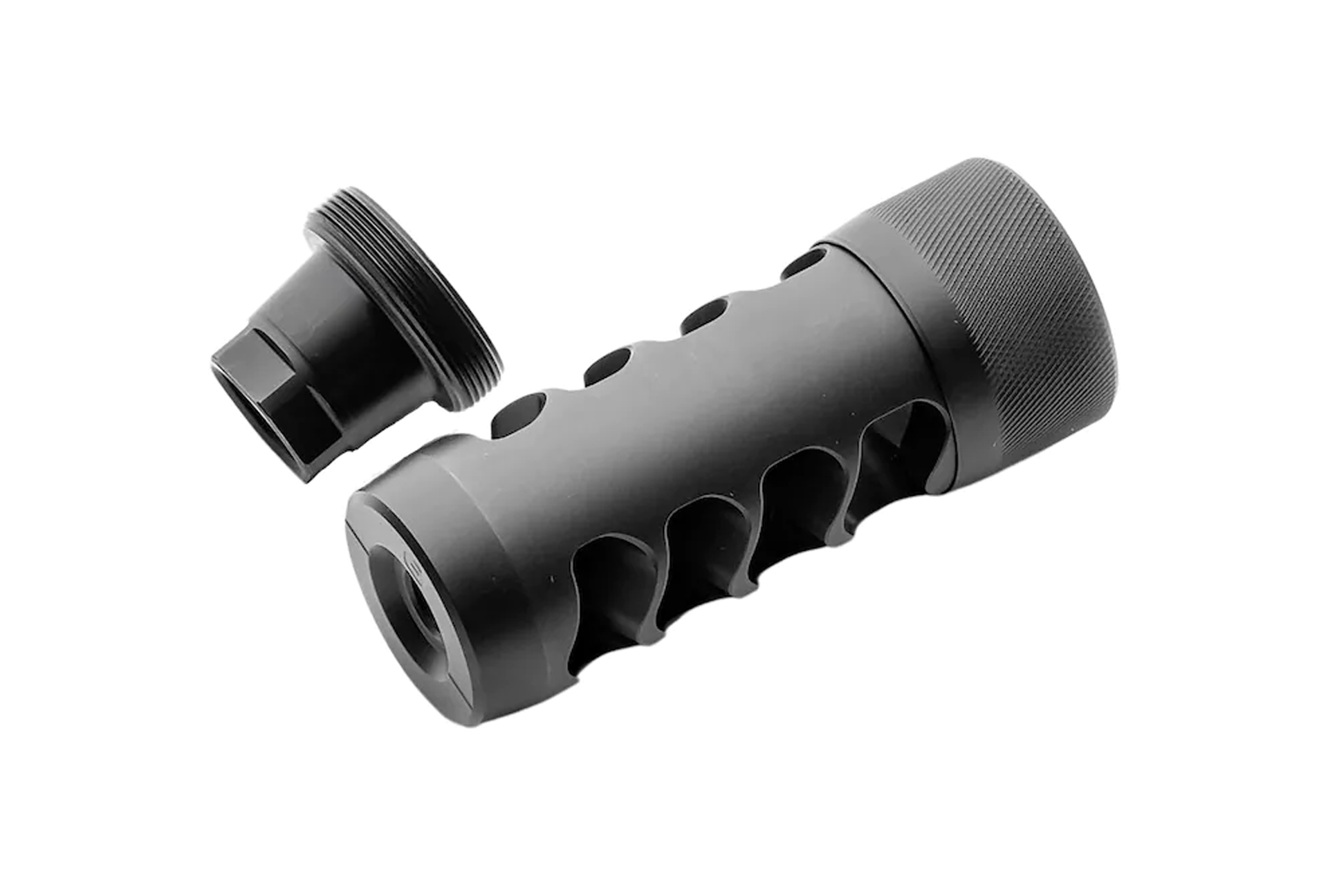The Area 419 Hellfire Match Self Timing Muzzle Brake system is not just another knockoff copy of existing self timing brakes. It was engineered from the ground up to be extremely effective, easier to install, and much more versatile. This 4-port design isn’t simply stacking more of the same design on the end, it’s a complete redesign with each port being different. Different length ports, different angle ports, and different height port optimizes each one to provide an ideal function based on the pressure and volume of gas being acted on at its position. This results in optimal recoil management, optimal muzzle rise control, and imparts no extra sound pressure at the shooter position.