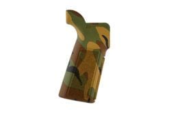The B5 Systems P-Grip 23 is designed for AR type rifles and features a more vertical angle and extended tang than traditional A2 pistol grips, providing improved ergonomics and proper trigger finger index