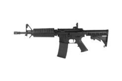 Rapid response, maneuverability, and enhanced firepower play a major part in joint and coalition operations in modern warfare. Colt’s M4 Commando carbines epitomize modern warfare’s emphasis on “Get In and Get Out”. They were designed to exploit firepower capability in confined spaces where lightweight mobility, speed and violence of action rule. The Commando can be comfortably carried with its 11.5″ barrel, yet be instantly available to provide the type of firepower required to outmatch combatants. Because it provides full 5.56mm power and accuracy in a very compact sub-machine gun size weapon, the Commando is often chosen over smaller less powerful sub-machine guns. Regardless of the application, the Colt M4 Commando provides the superior qualities that will enable operators to accomplish an increasingly wide range of combat missions.