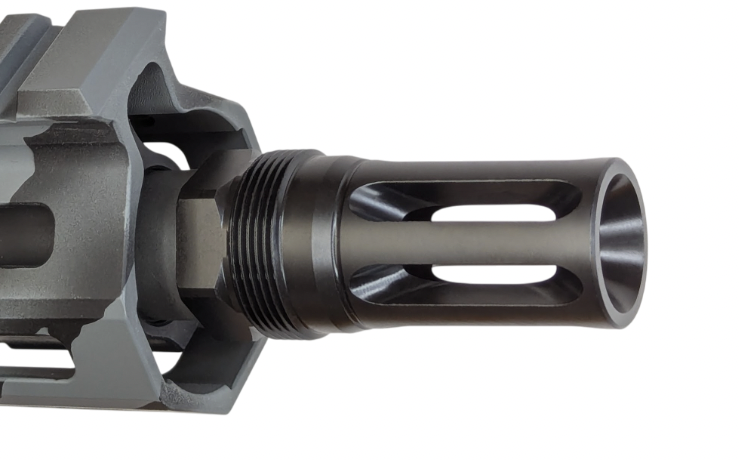 - Hybrid Design: Merges flash hider and muzzle brake functionalities to effectively reduce both recoil and muzzle flash, improving follow-up shot accuracy and shooter comfort.