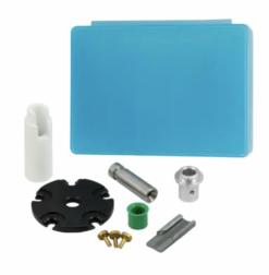 This kit typically includes the shellplate, locator buttons, slide die, and powder funnel specific to the supported calibers. Note that die sets are sold separately for optimal customization.
