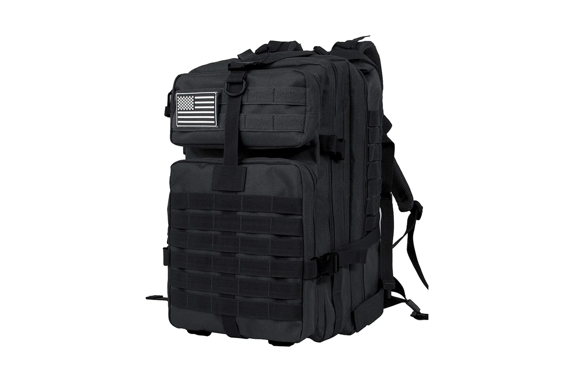 Truly a premium, high quality tactical backpack you can depend on. Made from high density (900D) Oxford fabric, this bag holds up in just about any weather or situation. Padded shoulder straps and back keep it secure & comfortable for the long haul. If you’re a heavy packer worry not, this bag has a massive 50L capacity.