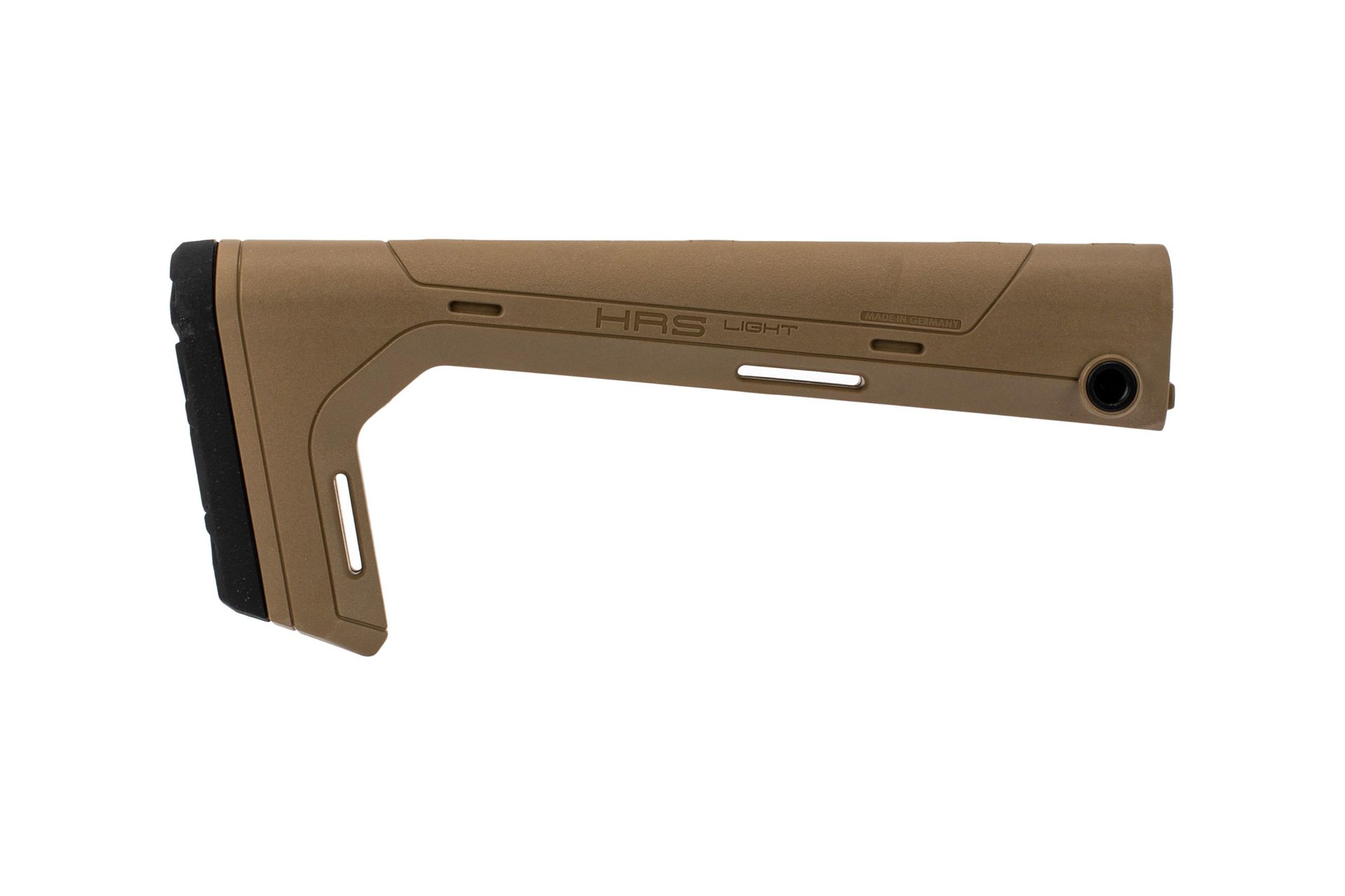 Hera Arms HRS stock is designed as a premium upgrade to a fixed A2 style stock that is just as durable and half the weight. The HRS Light features reinforced polymer construction and rubber butt pad for maximum comfort. The Minimalist design helps to reduce weight without sacrificing strength. The Sling mounts for flushcups are mounted on both sides so you’ll never run into a sling mounting issue. Additionally, it has sling loops for even more mounting options.