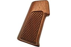 The JMK wood AR-15 grip is available in multiple configurations to suit your preference. These grips will fit any firearm that uses an AR milspec lower.