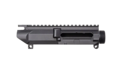 A stripped upper includes the basic receiver housing with essential machining like feed ramps and forward assist provisions but does not come with internal parts, sights, or rails—allowing full customization to your needs.