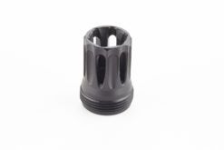 The QUELL “K-Mount” muzzle interface is easily user-installed without shimming or indexing-the only tool needed for installation is a commonly available 7/8″, 12-point socket wrench. With the suppressor removed, the black nitride finished “K-Mount” will reduce muzzle flash comparable to an M16A1 flash hider.