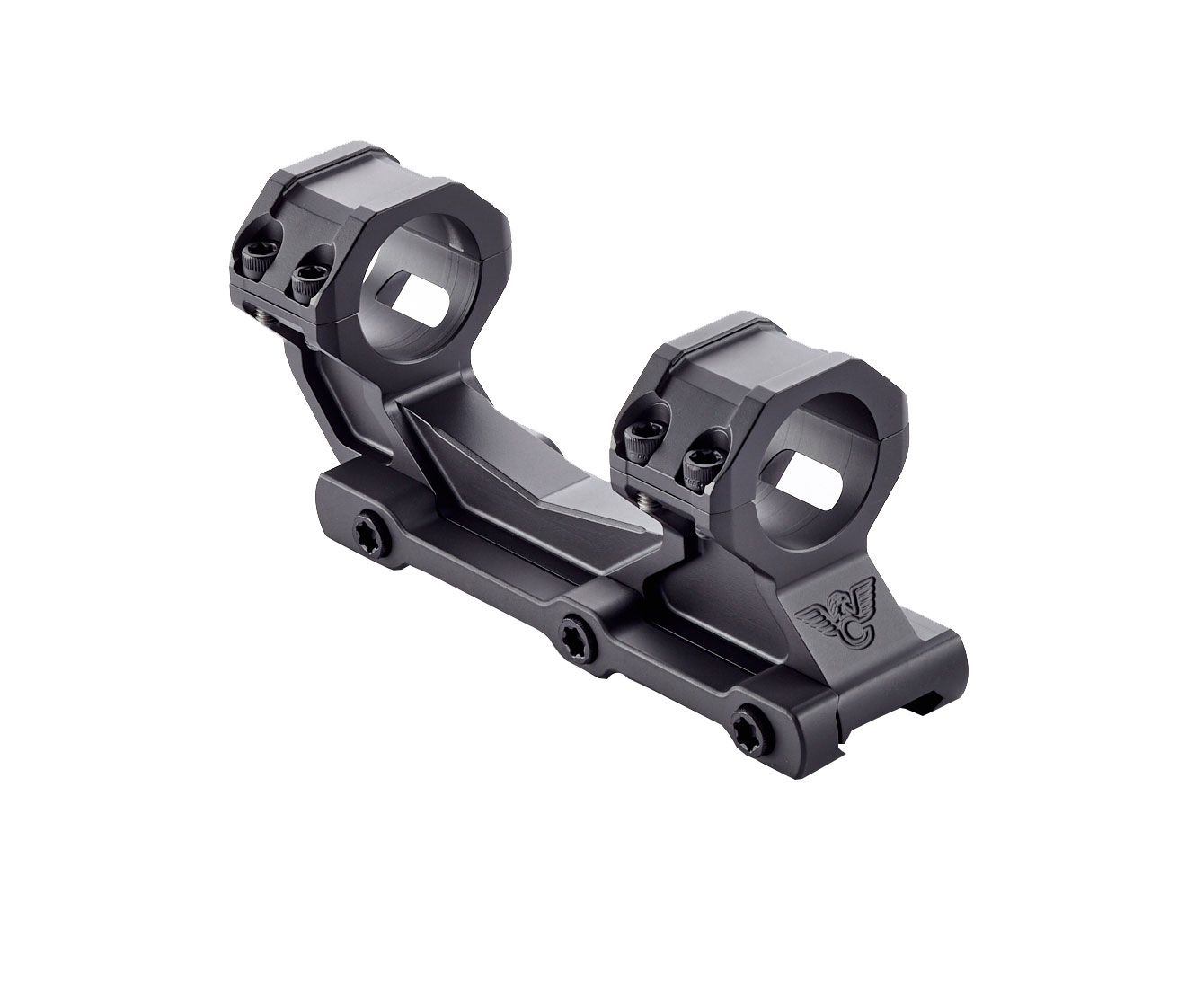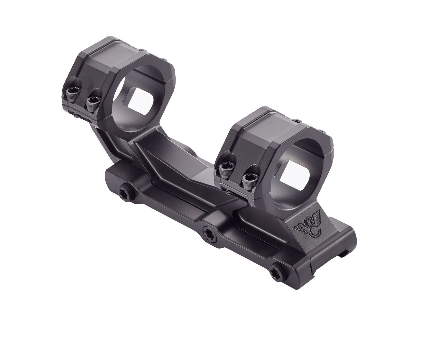 Precisely machined of 7075 Aluminum with a satin anodized finish, the V3 has a compact 5.25” long footprint with a rail to center ring height of 1.5” that is ideal for most tactical scopes with up to a 50mm objective lens. The semi-extended offset is long enough to get proper eye relief for most tactical scopes while avoiding the scope damaging tuning fork action of long cantilever mounts.